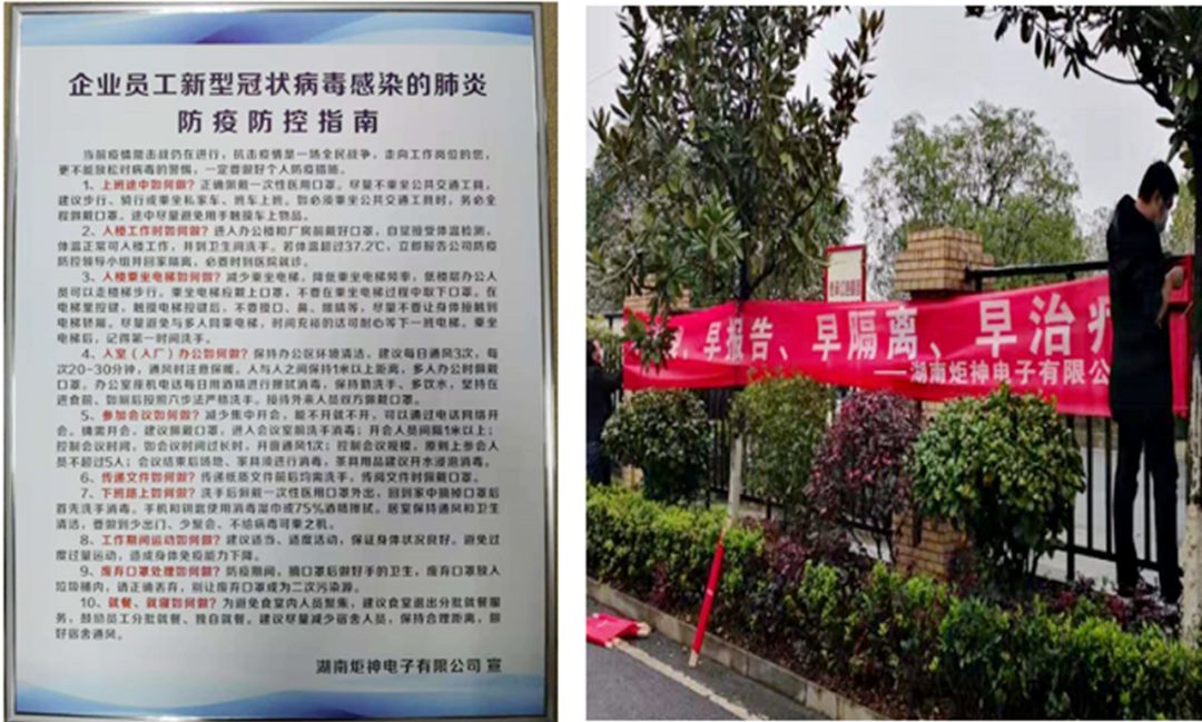 為應(yīng)對新型冠狀病毒感染的肺炎疫情,落實(shí)以企業(yè)防控為主的綜合防控措施,湖南炬神電子有限公司提前謀劃、周密部署,積極做好復(fù)工復(fù)產(chǎn)前各項(xiàng)準(zhǔn)備措施,為早日恢復(fù)生產(chǎn),保障社會經(jīng)濟(jì)正常穩(wěn)定運(yùn)行打響了一場全員戰(zhàn)“疫”。